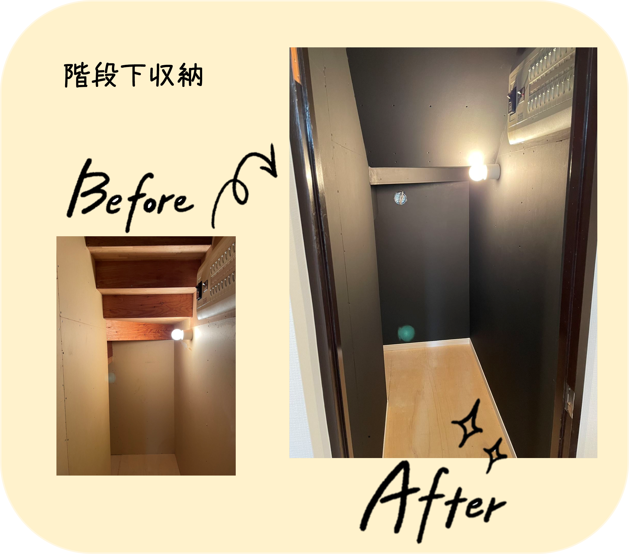 そして階段下の収納には、壁面に炭成分を含んだ塗料を使用しました。
