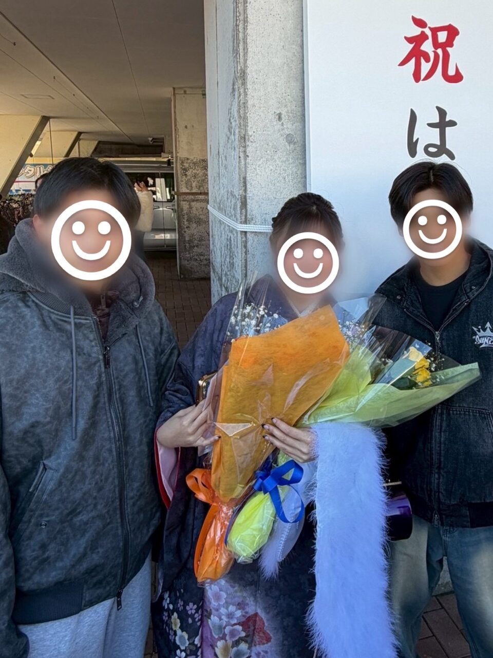 そして、今日一番のサプライズ。 なんと、二人の弟たちが式典に駆けつけてくれて、大きな花束を渡してくれたんです💐